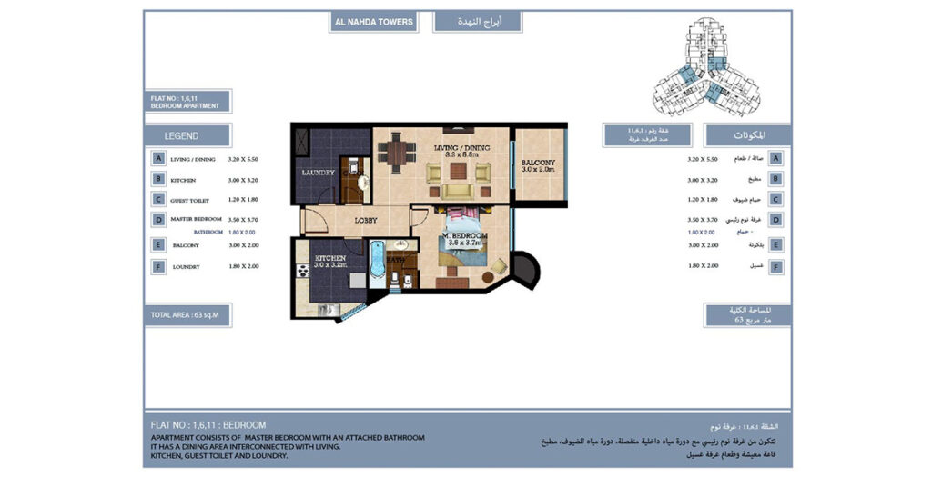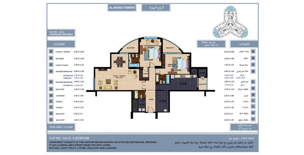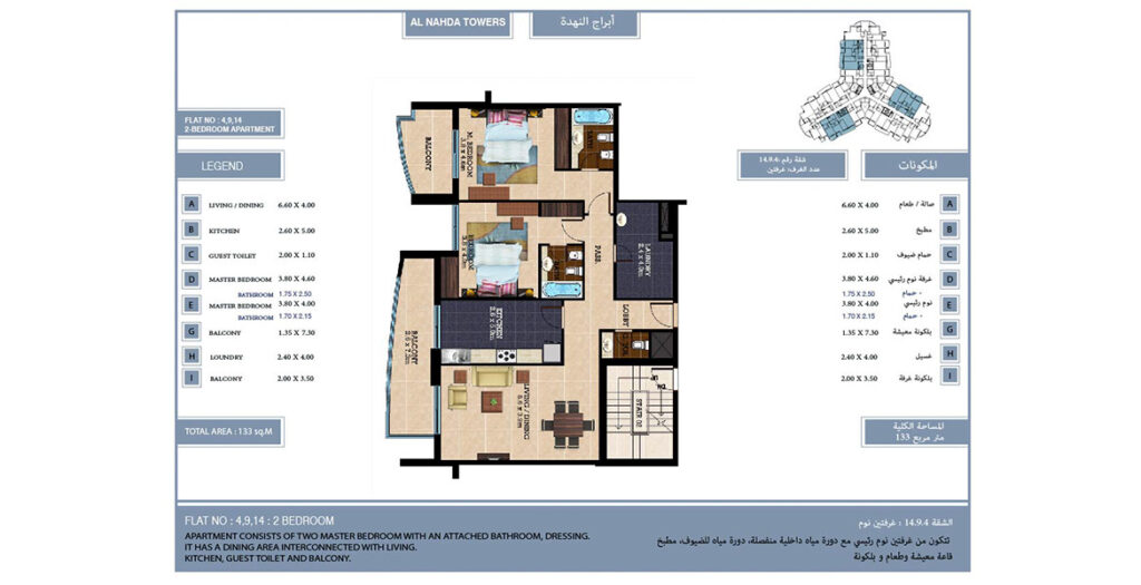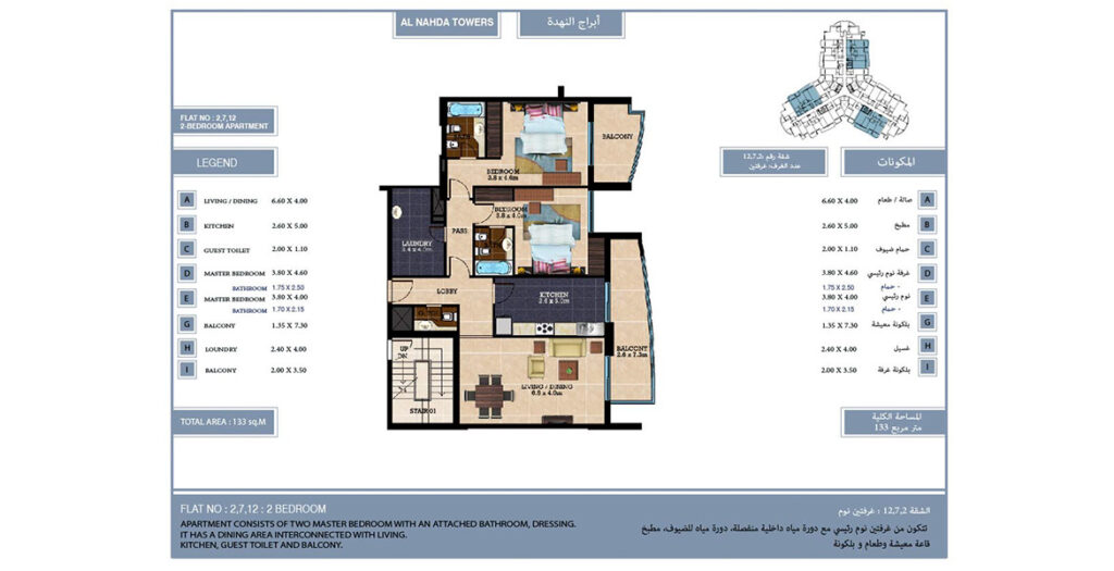 Al Nahda Towers is one of the best strategically residential complex located in Qusais Al Nahda area. Set amidst the backdrops of NMC Hospital, this building is home to 175 spacious premium apartments, which are complimenting the life style of its residents; all the apartments are equipped with state-of-the-art facilities to give you the best of modern living. Al Nahda tower has some exclusive facilities inside the homes and on the property that promises the finest in elegant living.